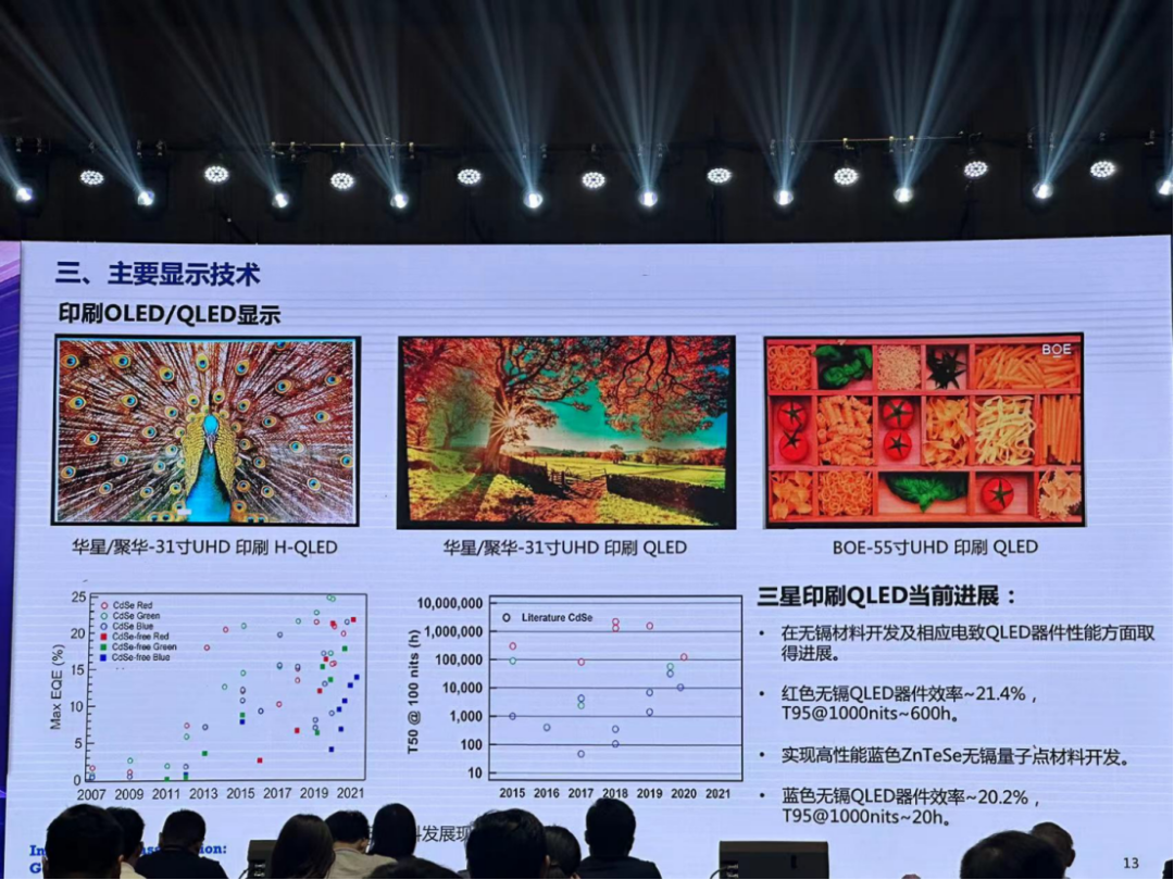 针对以上问题,欧阳钟灿分享了目前的进展情况。在关键材料方面,通过国家科技重大专项、863计划、973计划国家重点研发计划等科技和产业计划的持续支持,我国企业、高校、科研院所等单位已取得了较大的成效:印刷OLED红绿蓝材料的性能已基本赶上、甚至略有超越国外先进水平;QLED红绿材料的性能已经满足产品化需求,蓝色材料的寿命也有所突破,有望在不久的将来实现商业化应用。