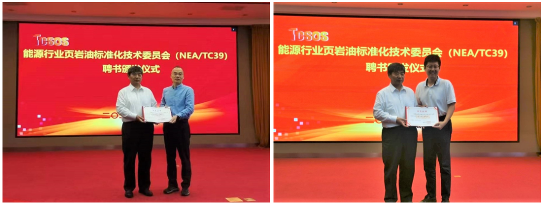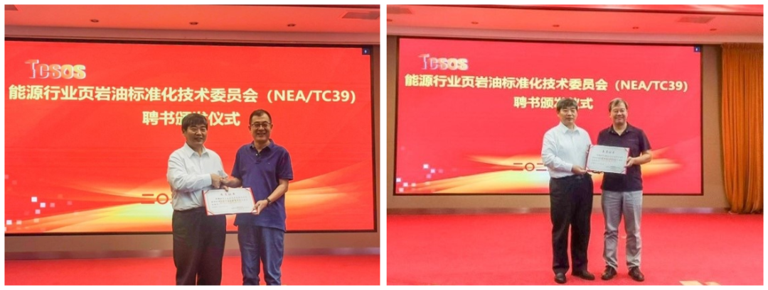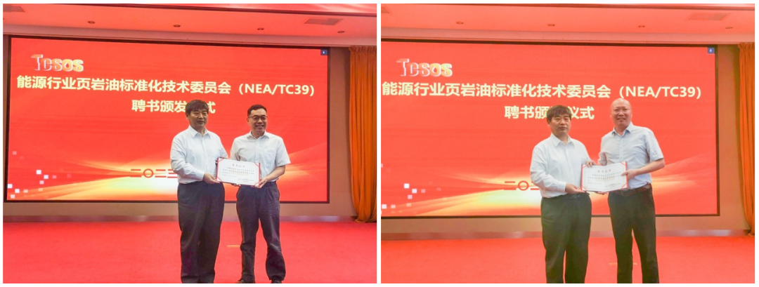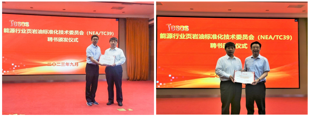 汪威处长代表能源行业标准化管理机构宣读了《关于对能源行业页岩油标准化技术委员会委员进行调整的批复》;标委会原主任委员匡立春总结了页岩油标委会自2020年11月27日成立以来的主要工作和取得的成绩;标委会秘书长侯连华教授做页岩油标委会秘书处工作报告,以及页岩油产业标准体系建设指南(2023版)说明;会议审议并通过了页岩油产业标准体系建设指南(2023版)。贺涛处长为郭旭升主任委员颁发了聘书。郭旭升主任委员为新任副主任委员、副秘书长及委员颁发了聘书。同时,为标委会专家委员会主任委员主任委员、副主任委员和委员颁发了聘书。