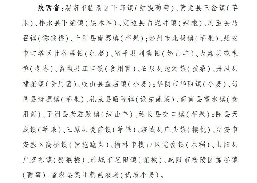 近日,农业农村部办公厅、财政部办公厅公布首批国家农业产业强镇名单,全国770个乡镇上榜、全省29个乡镇上榜,渭南市临渭区下邽镇(红提葡萄)、富平县刘集镇(奶山羊)、大荔县范家镇(冬枣)、华阴市华西镇(小麦)、澄城县庄头镇(樱桃)5个镇名列其中,数量全省各地市第一。目前,我市蒲城县椿林镇(小麦)、富平县淡村镇(柿子)分别于2022年、2023年获批创建国家农业产业强镇,创建期两年。