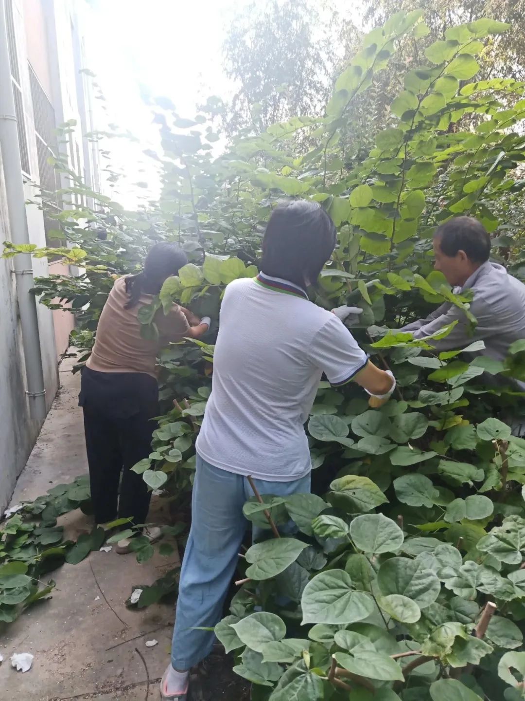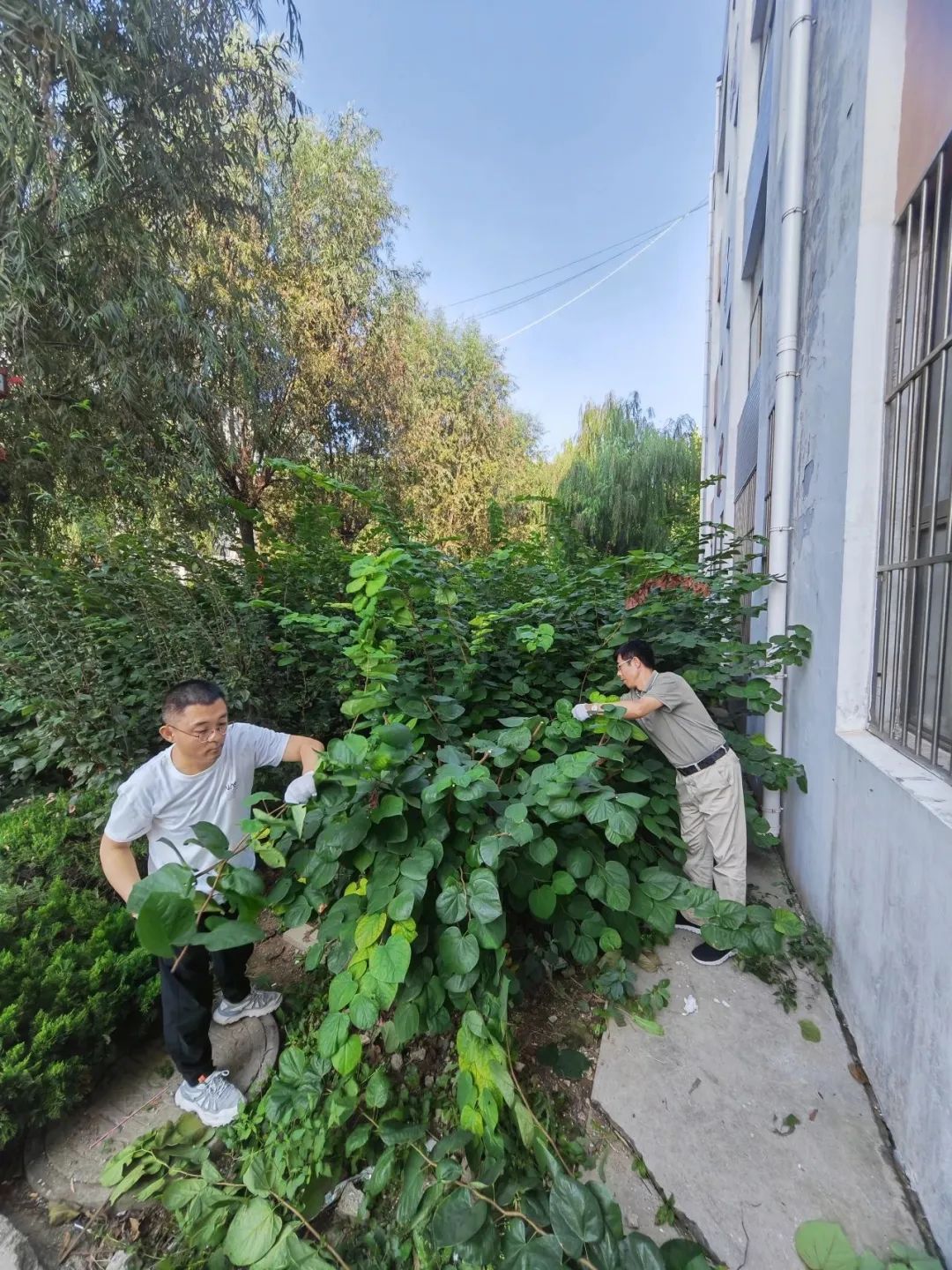 活动通知发布后,老师们积极主动报名参加,合理划分修剪场地。大家纷纷到总务处领取工具,第一时间赶到所分配地点进行劳动。修剪树木并非易事,需要老师们具备技术和专业知识。他们小心翼翼地将紫荆等绿化树木的高度修剪至一楼窗台高度,不仅要保持整洁美观,更要确保一楼宿舍能够得到足够的光照。这是一项精细而繁重的工作,但老师们毫不懈怠,全力以赴。修剪过程中,老师们特别注重环境保护,将修剪下的枝条清理到绿化带外的路边,清理后的工作场地整洁有序。
