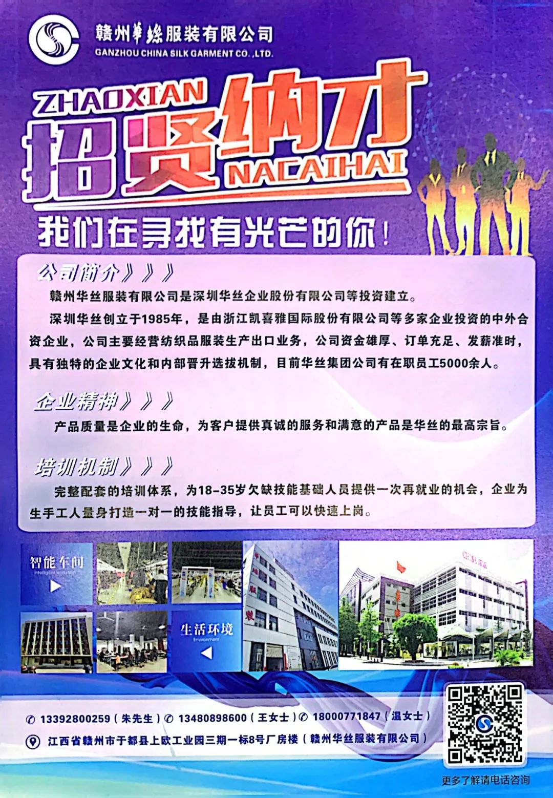 公司地址:江西省赣州市于都县上欧工业园三期一标8号厂房楼(赣州华丝服装有限公司)