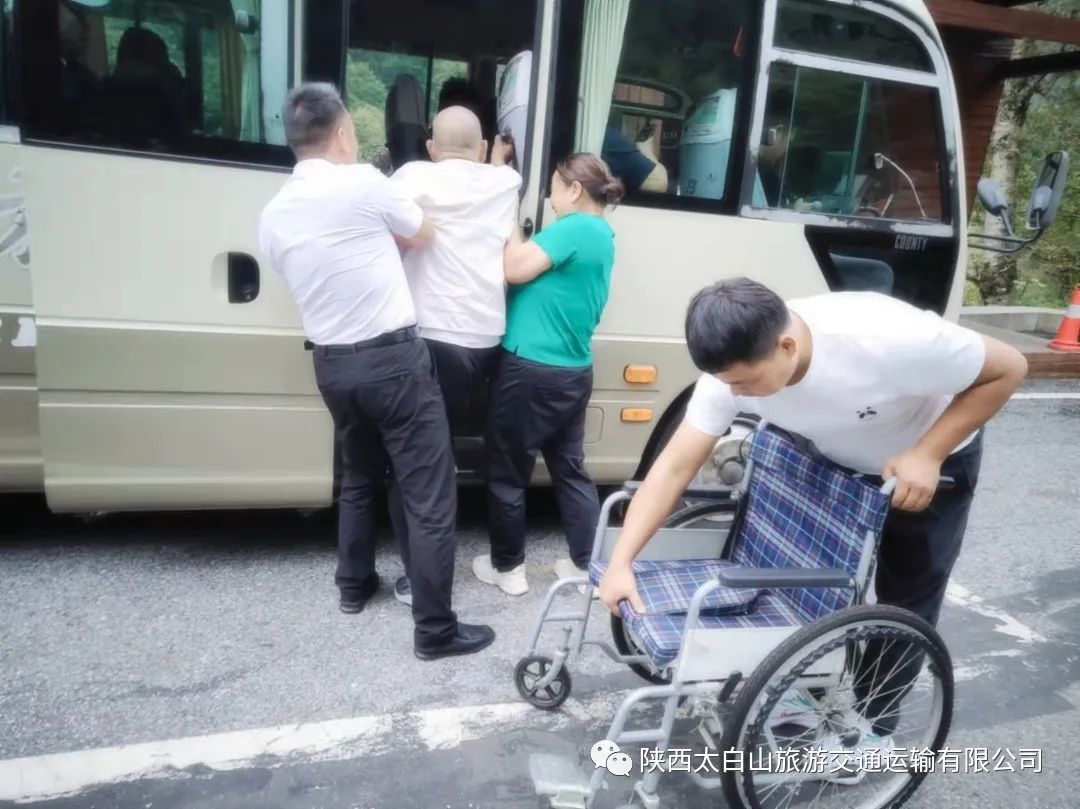 72号驾驶员王宏波、98号驾驶员李小培帮扶行动不便游客乘车。