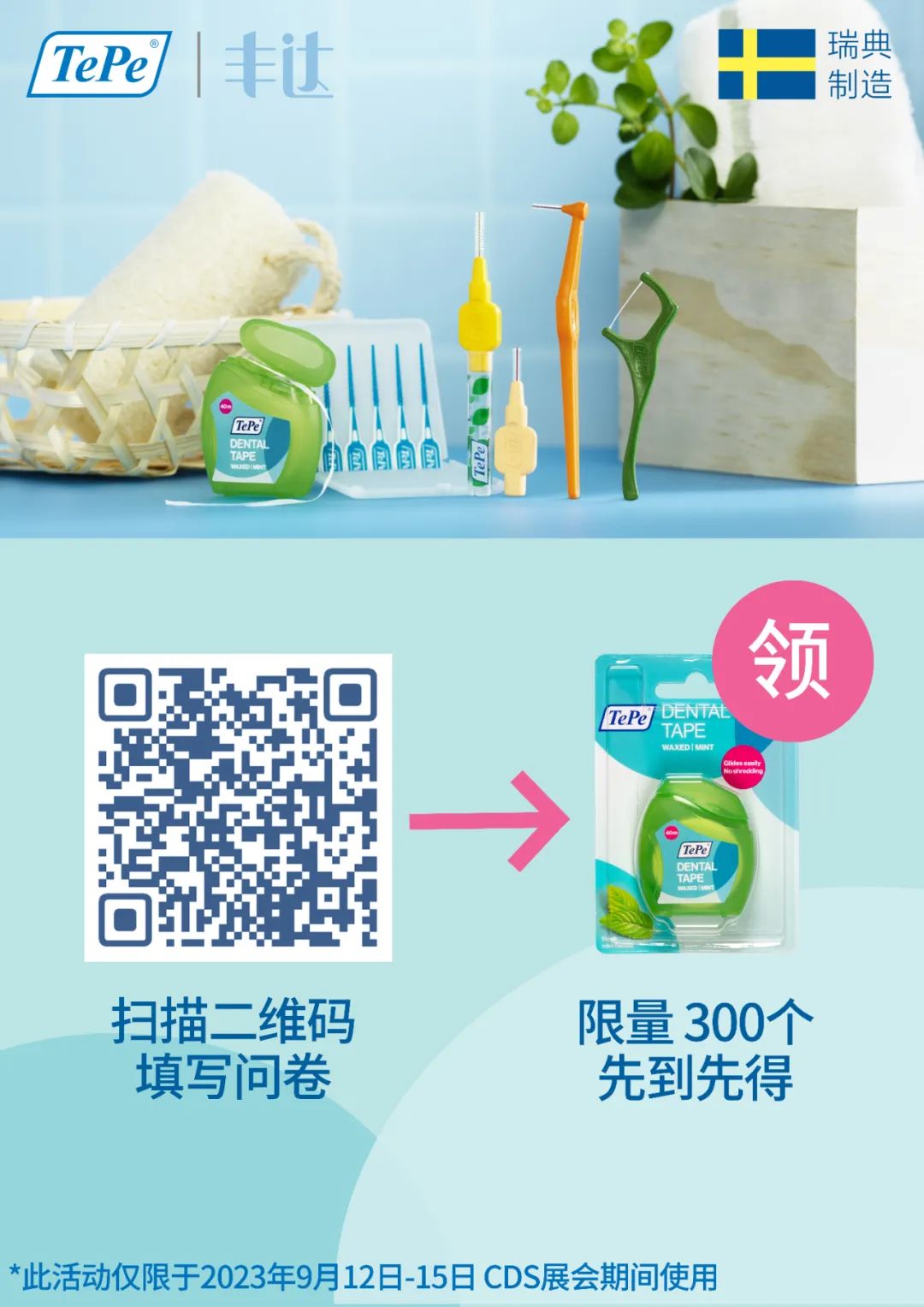 填写完成后可与现场工作人员领取1个 TePe40m牙线