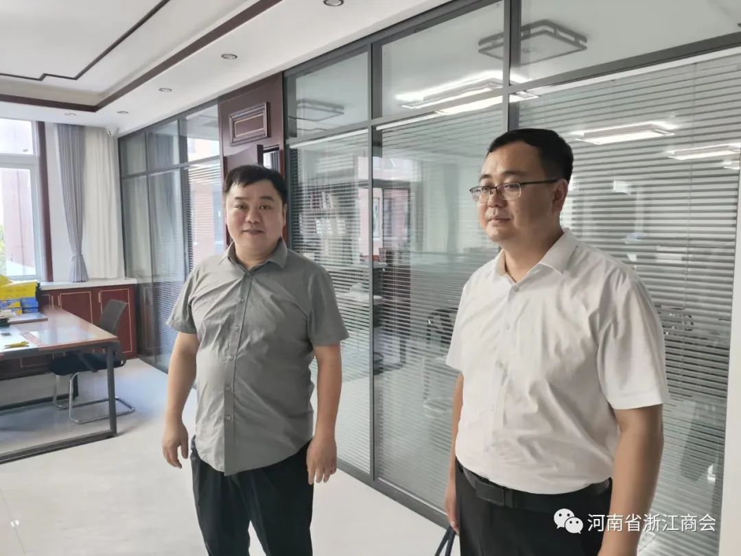 河南省浙江商会9月7日讯 凝聚浙商力量 加强互通交流 近日,河南省浙江商会副秘书长何柳春、品宣部主任张化南一行走访周口市浙江商会、周口匠人匠心科技有限公司。