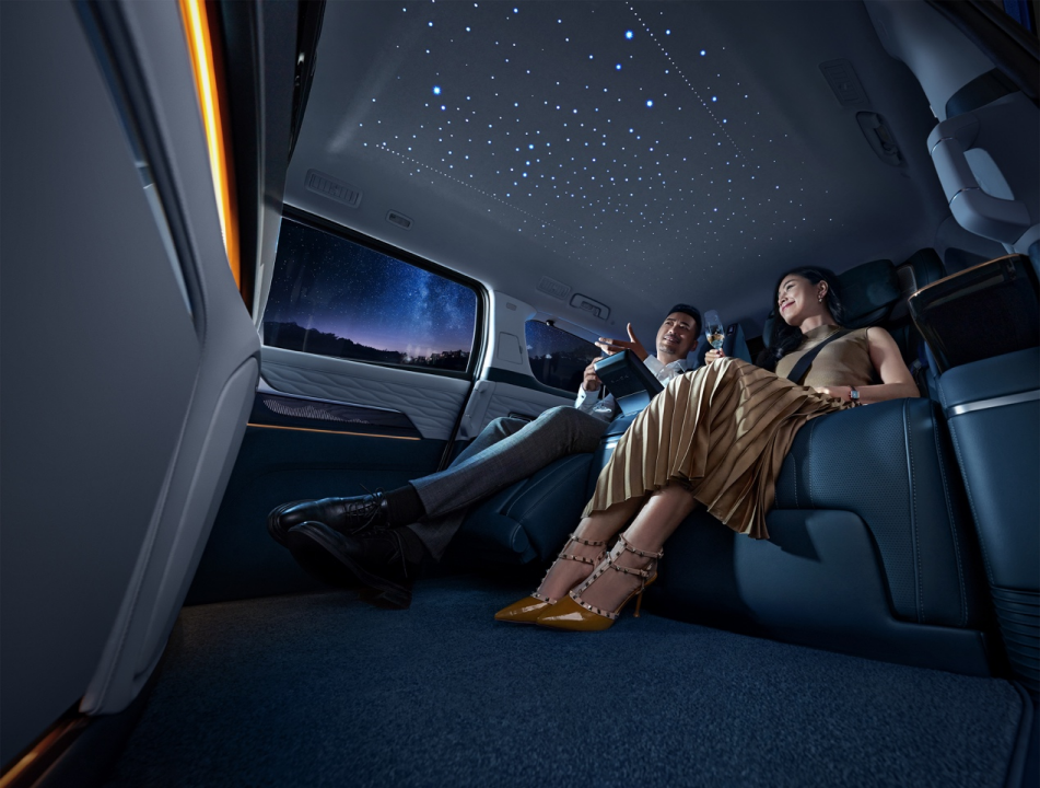 四座版私享版开创性地引入多项行业领先科技配置,比如营造后排奢华私享空间的豪华智慧幕墙系统、业界功能最丰富的160度云感座椅、赋予座舱浪漫情境的528个流星雨星空穹顶,还有Bose全球首款以后排为优先聆听位置的Executive Edition悦尊音响系统等,为用户打造一个别具匠心的移动空间。