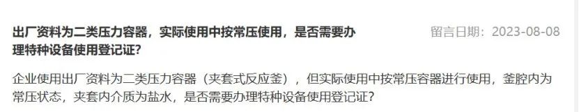 答:所述若作为常用容器使用,可以不按特种设备进行使用管理。