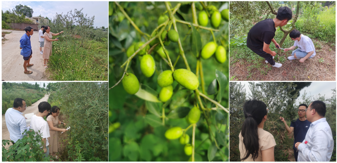 2023年9月1日,机电学院院长强华,教师王晓阳,罗双宝以及学生张明宝,陈宝文一行前往重庆市合川区隆兴镇峨眉村油橄榄种植基地调研。本次调研基于重庆市教委科学研究计划重点项目:基于机械多维振动仿生油橄榄采摘收获机设计与试验研究。作为项目负责人,强华院长积极带领项目组已经完成相关模型设计的前期研究,本次调研主要是记录成熟期油橄榄果实的物理参数,植株间距等相关数据。通过随机抽样的方式对生长不同区域的20棵油橄榄树的相关数据进行了记录。
