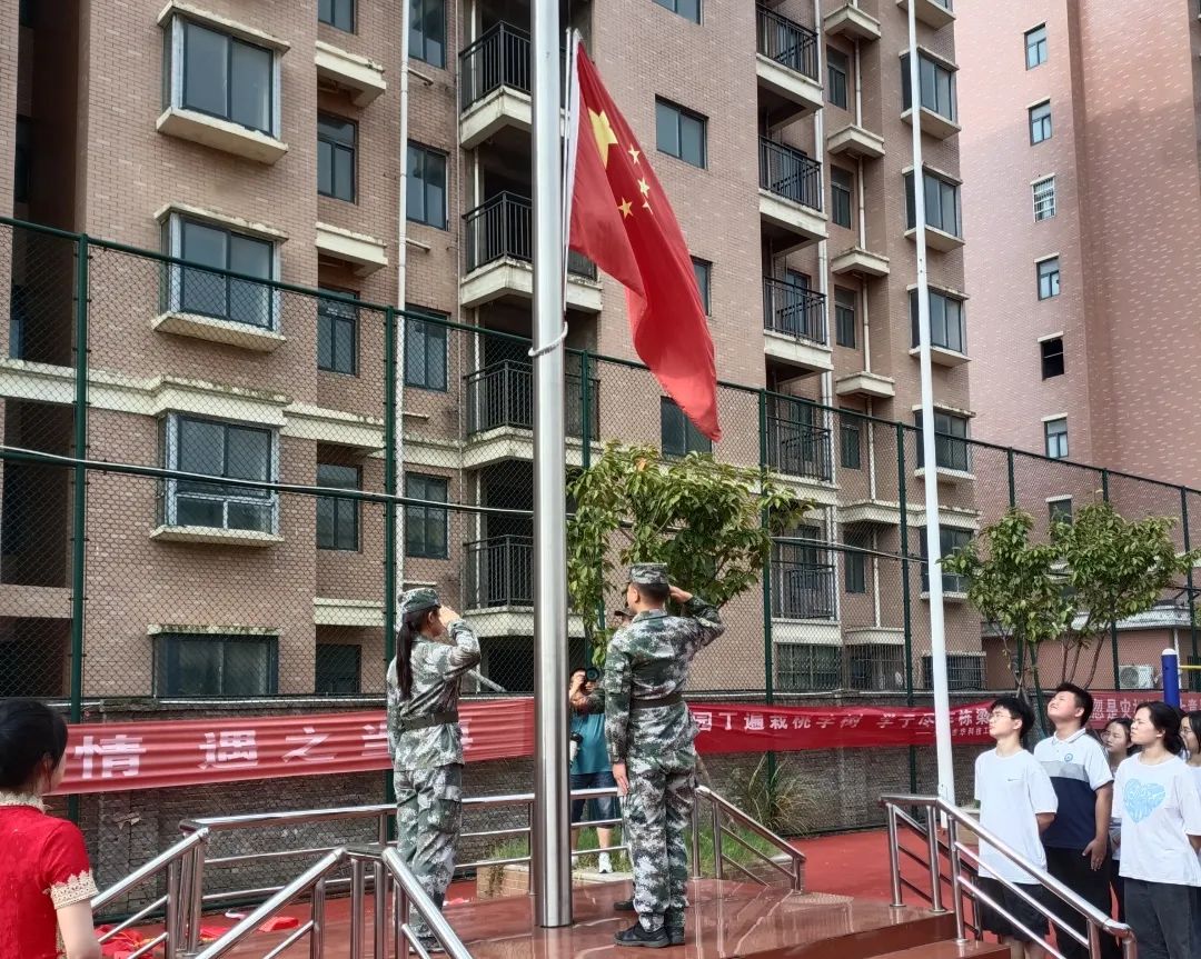 朝阳喷薄,少年整装,伴随着激昂的国歌声,庄严的升旗仪式拉开了开学典礼的序幕。