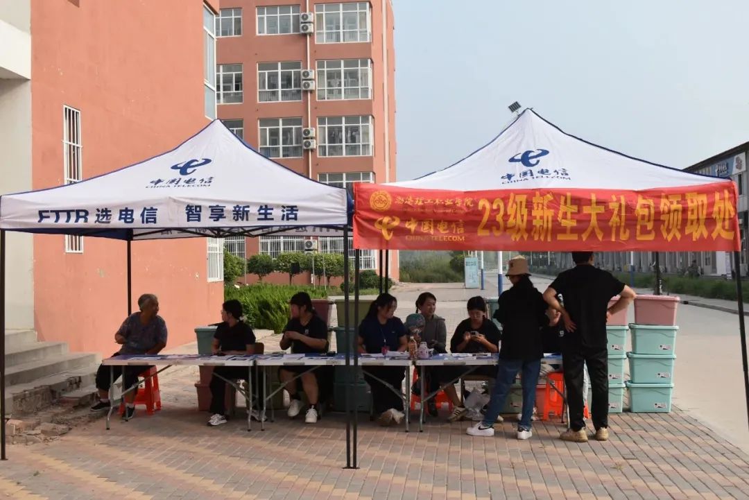 学院为新生们准备了福利与打卡点,福利地点在9号宿舍楼东侧,签字打卡点在实训教学楼门前。