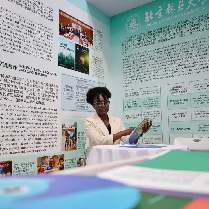 本次服贸会以“开放引领发展,合作共赢未来”为主题,涉及教育服务及计算机与信息服务、金融服务、文旅服务等9大专题。我校国际学生参观教育服务专题展,通过志愿者讲解、自身体验等方式直观地感受中国在教育领域的新发展理念和发展成果。在我校设立展台前,国际学生们纷纷合影留念。部分国际学生也参观了文旅服务专题展,感悟近年来北京文化产业高质量发展重要成就,沉浸式体验“一带一路”沿线国家展位,促进各国文化交流。