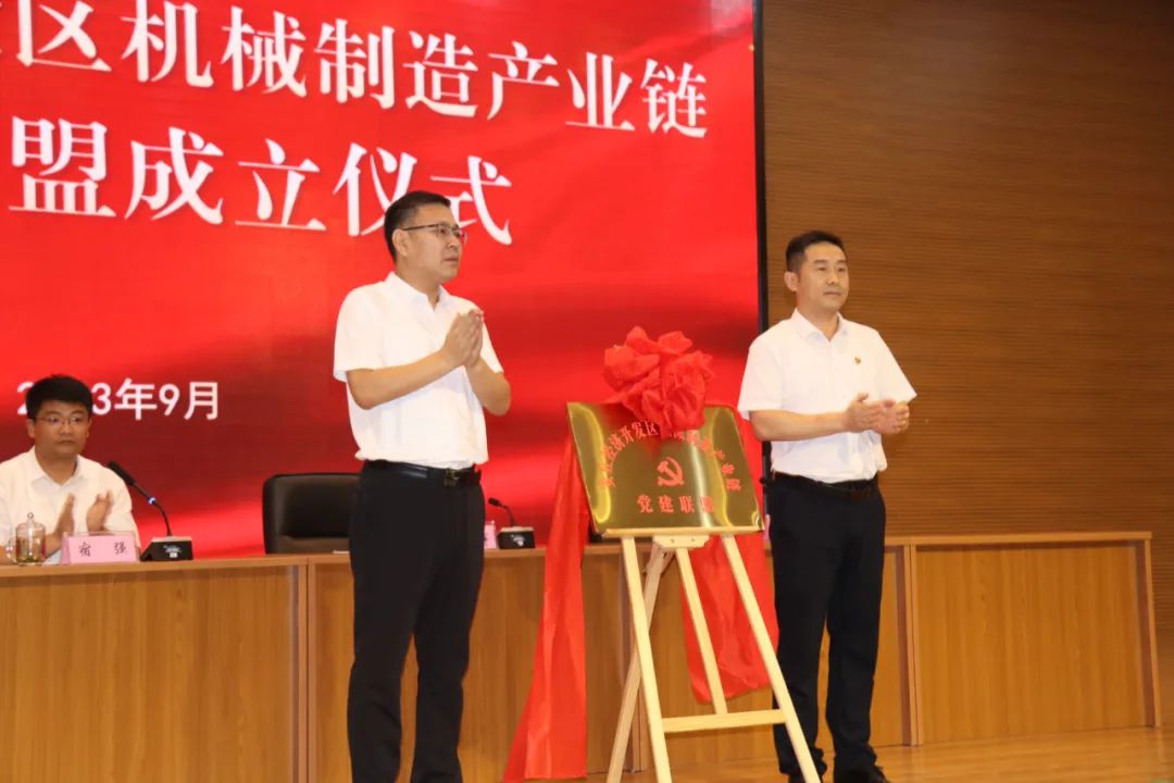 孙业礼同志介绍了机械制造产业链党建联盟有关情况。他表示,经济开发区是全市工业经济发展的主阵地、主战场,作为主导产业的机械制造产业不断转型升级、创新发展,党建联盟的成立能够更好地实现产业集聚抱团发展,开发区党工委、管委会将为联盟发展壮大提供最大支持,有效发挥机械制造产业链党建联盟牵头抓总作用,党建赋能产业链提质增效,助推工业经济实现高质量发展。