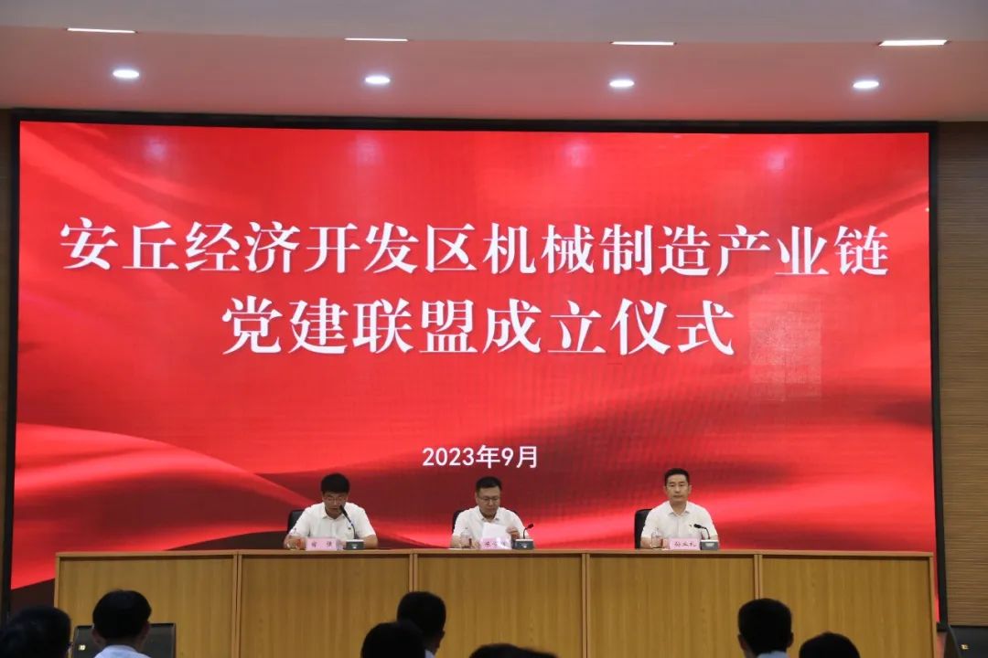 9月7日,经济开发区机械制造产业链党建联盟成立仪式在山东萨丁重工有限公司举行,市委组织部分管日常工作的副部长、两新组织工委书记陈学辉,开发区党工委副书记、管委会副主任,市青龙湖发展服务中心党委书记、主任孙业礼出席活动并讲话,开发区党工委副书记宿强主持仪式。市委组织部、开发区相关负责同志,机械制造产业链党建联盟成员单位负责同志,共计70余人参加。