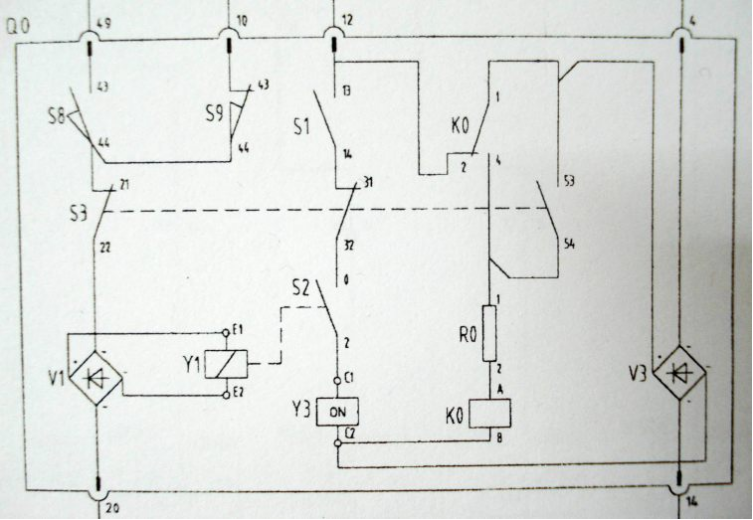 如图所示将机械特性测试仪的合闸输出电源接在4和14这两个端子上,将储能电源接在储能电机的两端25和35上,分闸电源接在分闸线圈的两端31和30上,我厂使用的ABB真空断路器还有一个合闸闭锁线圈,在合闸闭锁线圈未得电时,不能合闸,因为常开点S没有闭合,所以不能合闸。我们在做试验时用一块折叠的纸将合闸闭锁电磁铁的辅助触点顶住让S闭合,当发出储能指令时(图纸目前的状态是分闸未储能状态),储能电机开始储能,当储好能后S的常闭打开,常开闭合,这时已经具备了合闸条件。当发出合闸指令后,合闸线圈得电去合闸。合闸后分闸回路的辅助触点S闭合为分闸做好准备,当发出分闸指令时断路器去跳闸。