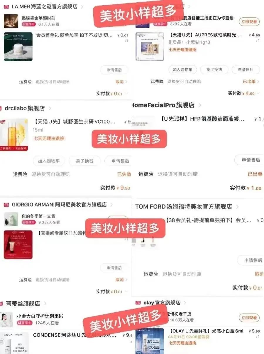 这些都是之前群里领到小样的下单图,都是旗舰店的!超多大牌活动等你来,抢到手软!