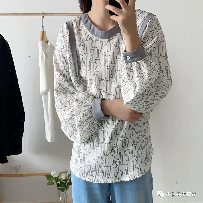 ⬜长袖小衫上的印花写着秋天的韵味