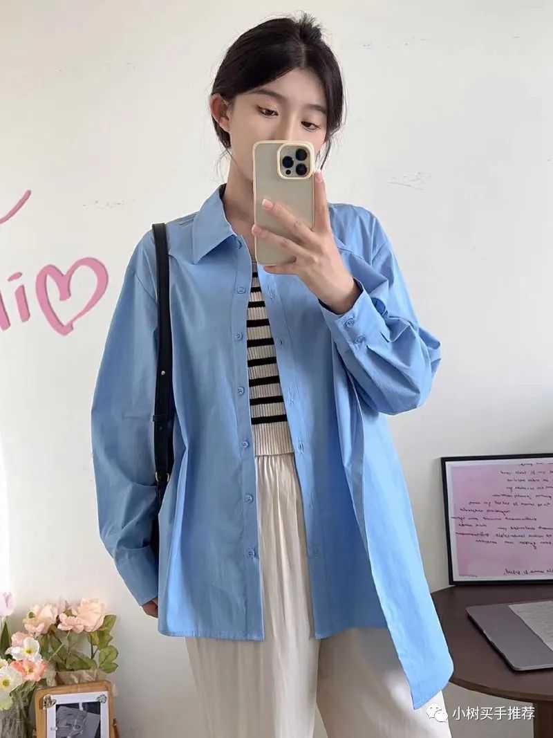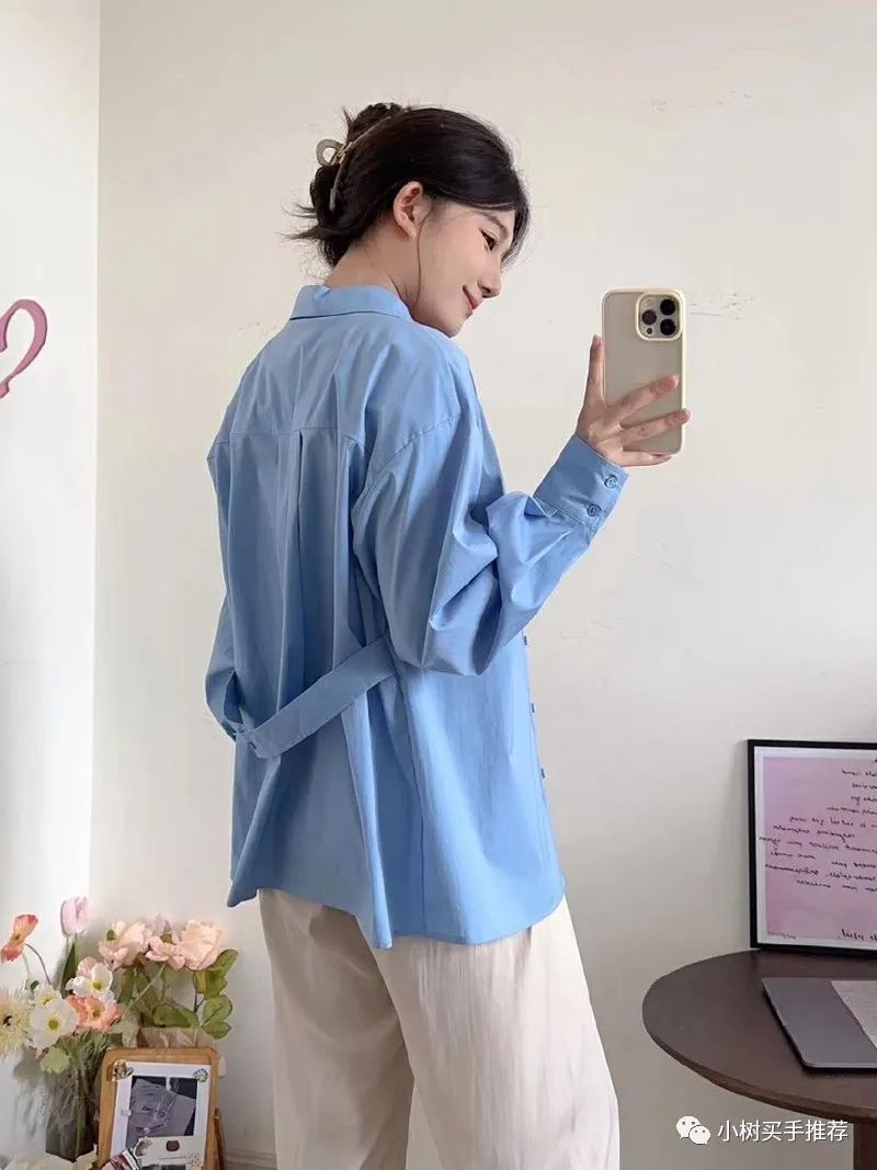 蓝衬衣随便搭配一条宽腿裤?