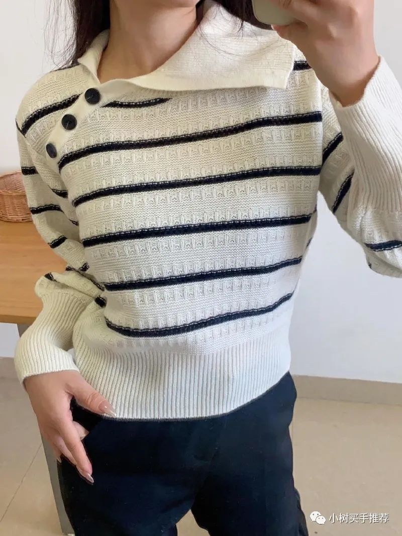 ?蓝色衬衫+条纹毛衣