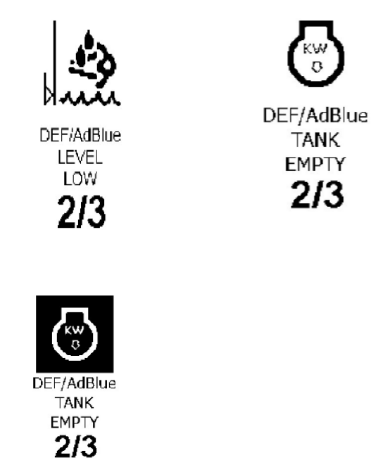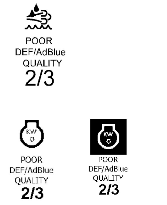 出现图示中任何一个标志时,都需立刻放空尿素箱,并更换车上全部尿素,同时清洗品质传感器。