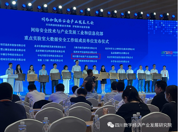 四川数字经济产业发展研究院受邀参会,并在网络安全技术与产业发展工业和信息化部重点实验室大数据安全工作组成员单位发布仪式上,获得授牌。
