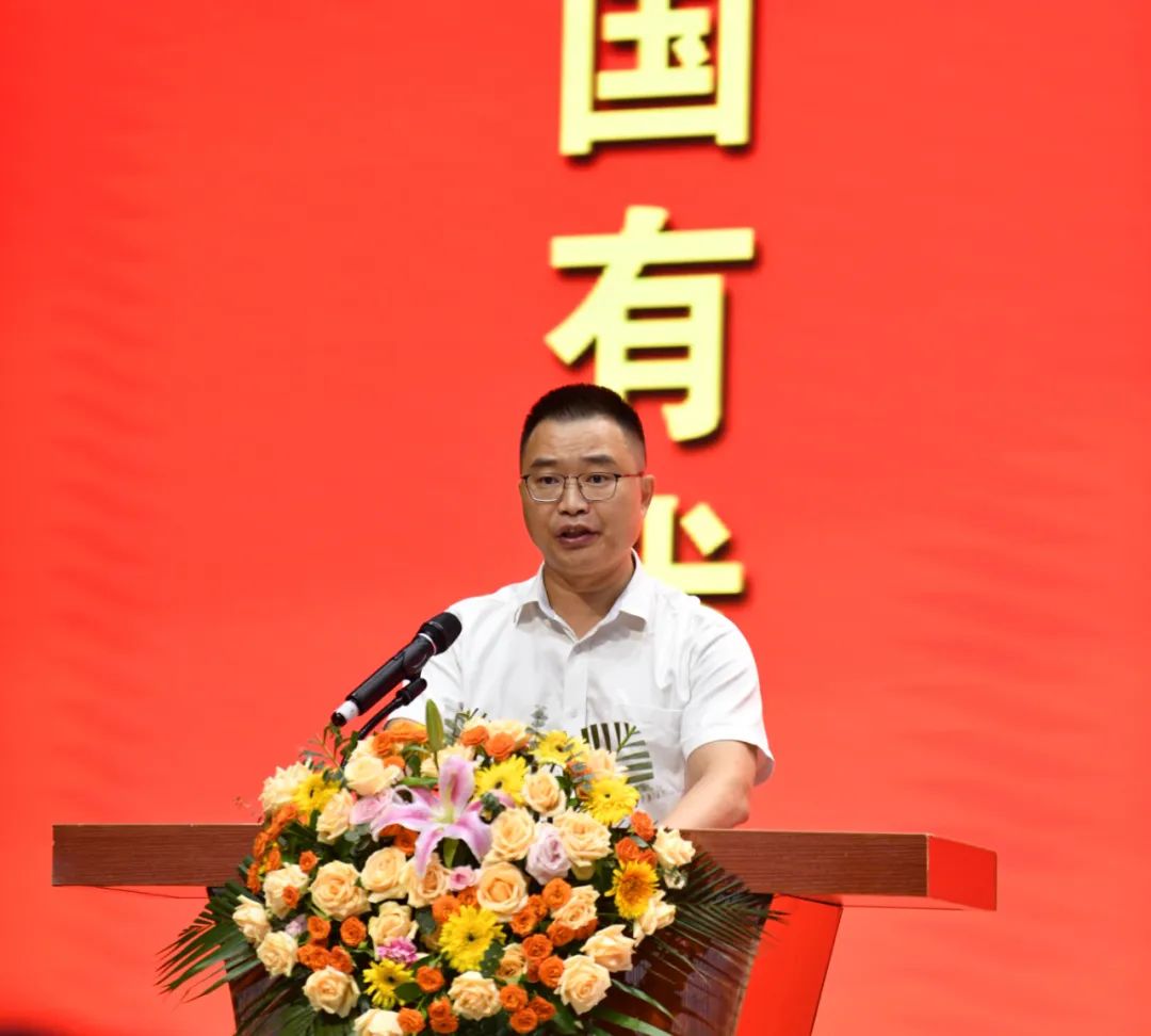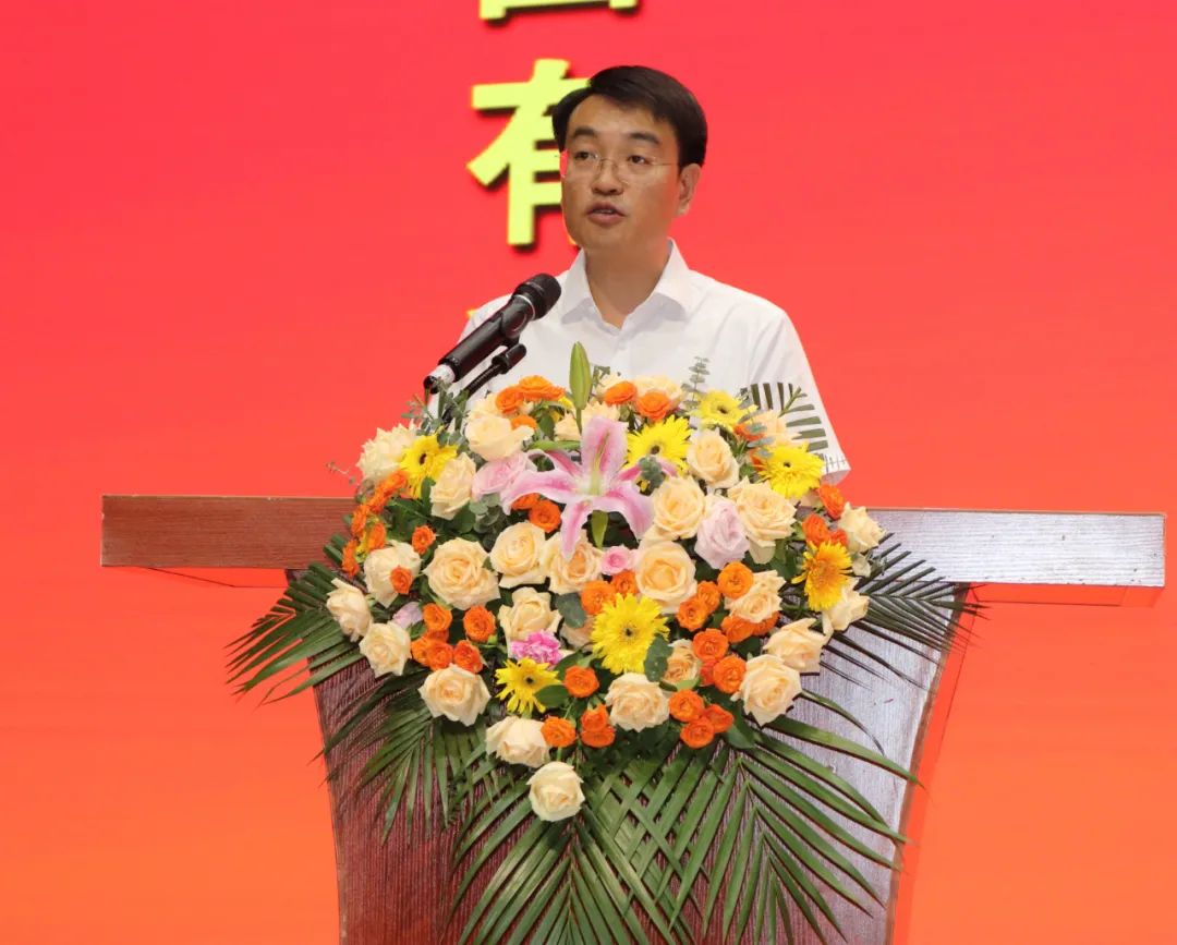 虎门镇党委副书记、镇长吴庆球宣读《中共虎门镇委、镇政府关于2023年度虎门镇教师育人优秀教师的情况通报》