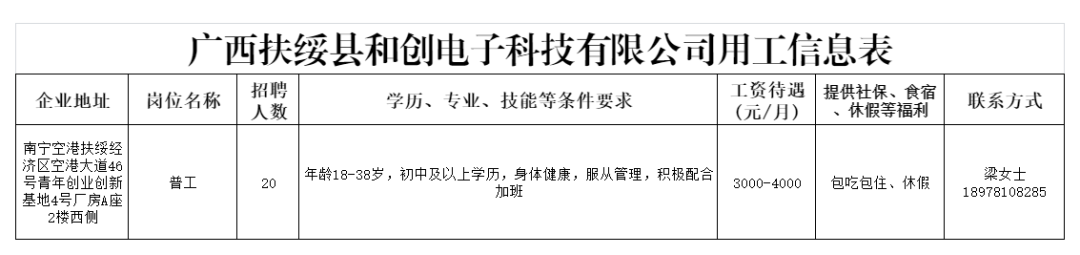 扶绥县服务企业用工