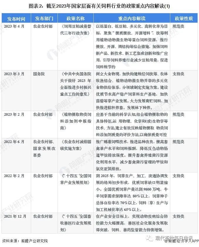 截止 2023 年 8 月中国饲料行业相关政策汇总解读如下: