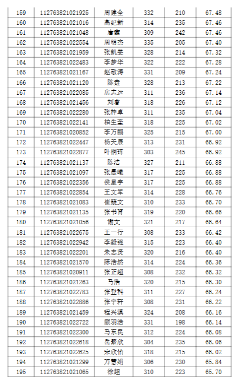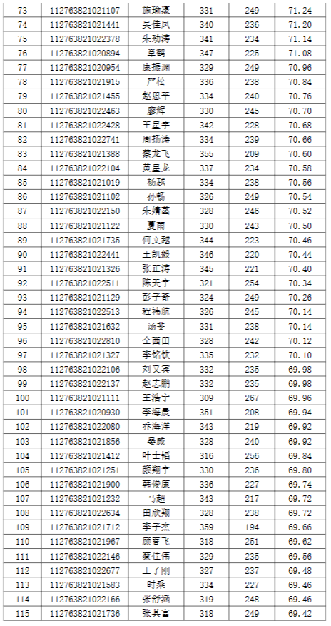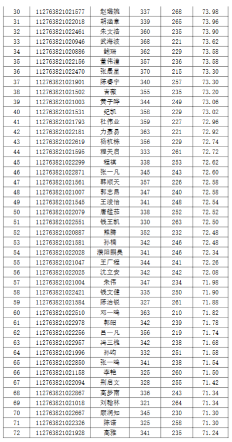 2、招生考试总成绩的计算办法。招生考试总成绩实行百分制,按照初试总成绩70%、复试总成绩30%计算。具体计算公式为:招生考试总成绩=(初试总成绩×1/5)×70%+(复试总成绩×1/3)×30%(招生考试总成绩按照四舍五入保留小数点后两位)。