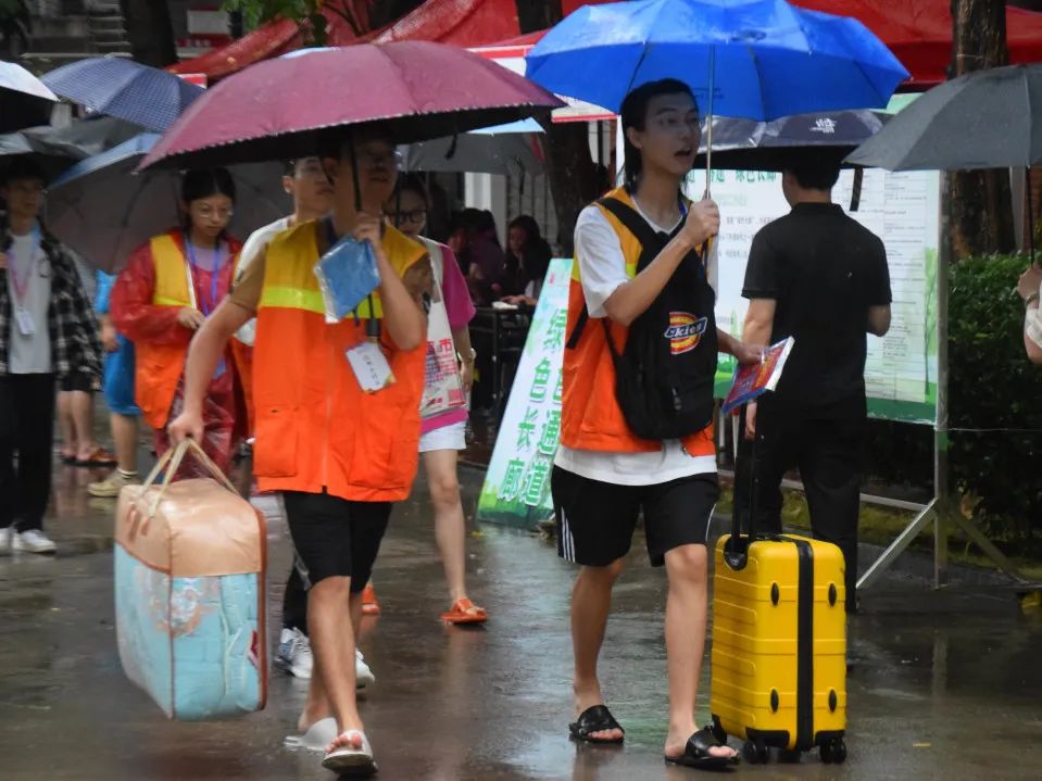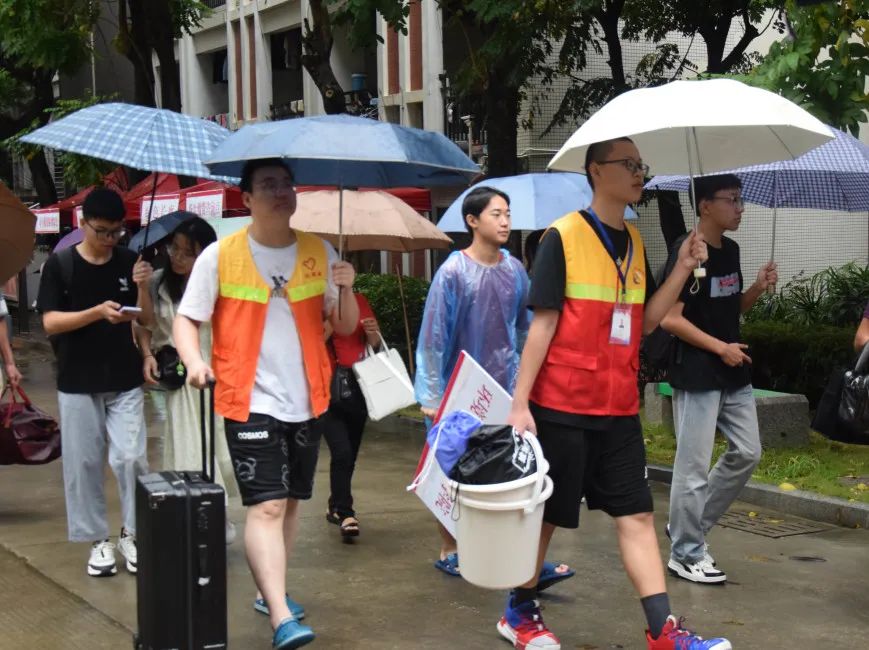 纵使栉风沐雨,他们脸上仍然洋溢热情笑容,消除了新生们独在异乡上学的胆怯,暖人心扉。
