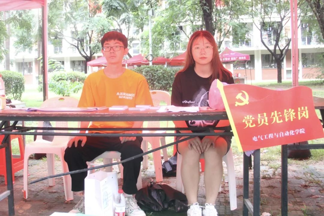 晨光熹微,电气学院的志愿者们就在各迎新点集合,以饱满的精神状态等待新生们的到来。