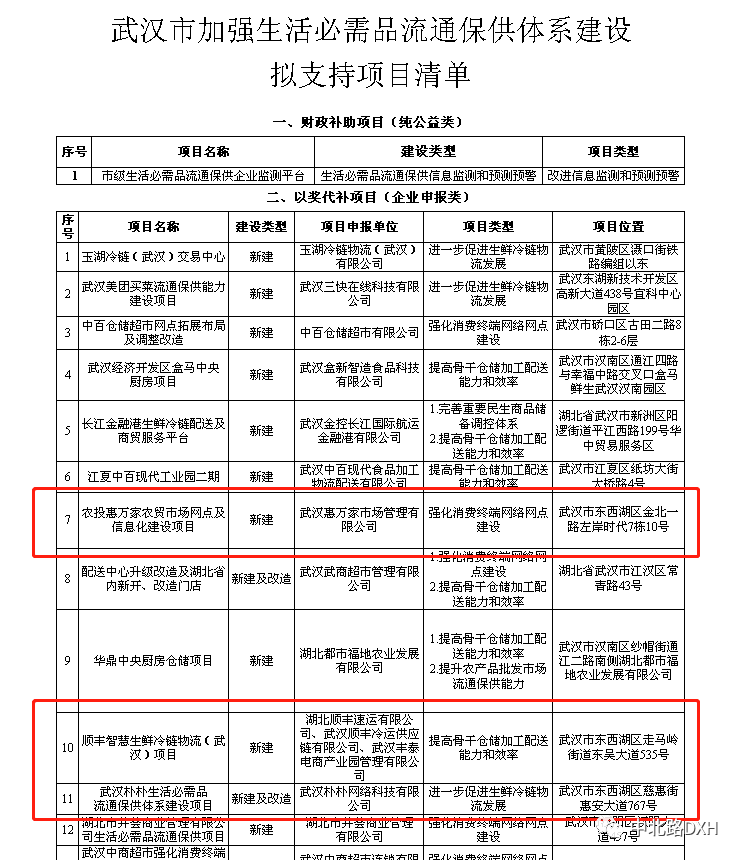 东西湖产业:涉及东西湖多家企业,《关于武汉市加强生活必需品流通保供体系建设拟支持项目清单的公示》