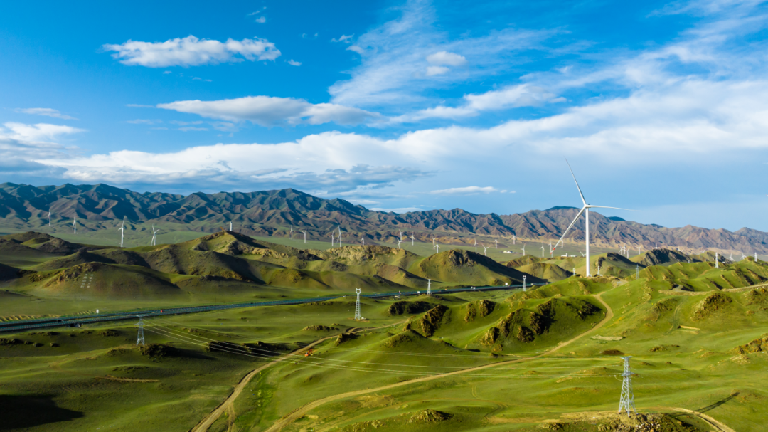 ▲新疆博州风力发电厂风机林立绿电并网