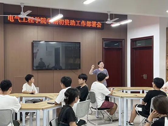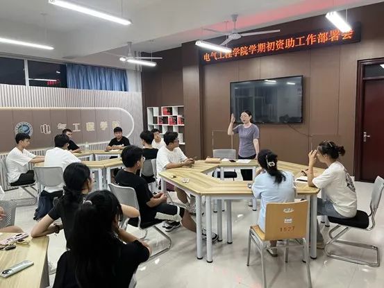 为扎实推进学生资助工作有序开展,提升我院学生资助工作水平。电气工程学院于2023年9月4日晚上7点在11号教学楼310教室开展了学期初资助工作部署会。本次会议由辅导员王莉主讲,我院助学部成员以及全体助学委员参加了此次会议。