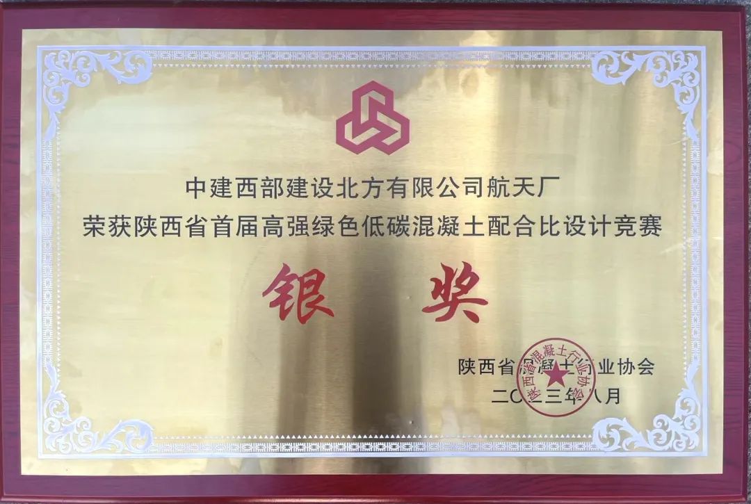 北方公司荣获2项竞赛银奖,比赛中展现的低碳技术得到组委会给予的高度评价。孟刚、张凯峰被授予“陕西省混凝土行业专家委员会优秀专家”荣誉称号。汉城厂技术科科长弥杨志、秦汉厂技术科科长欧阳平分别荣获陕西省首届高强绿色低碳混凝土配合比设计优秀设计师二等奖、三等奖。