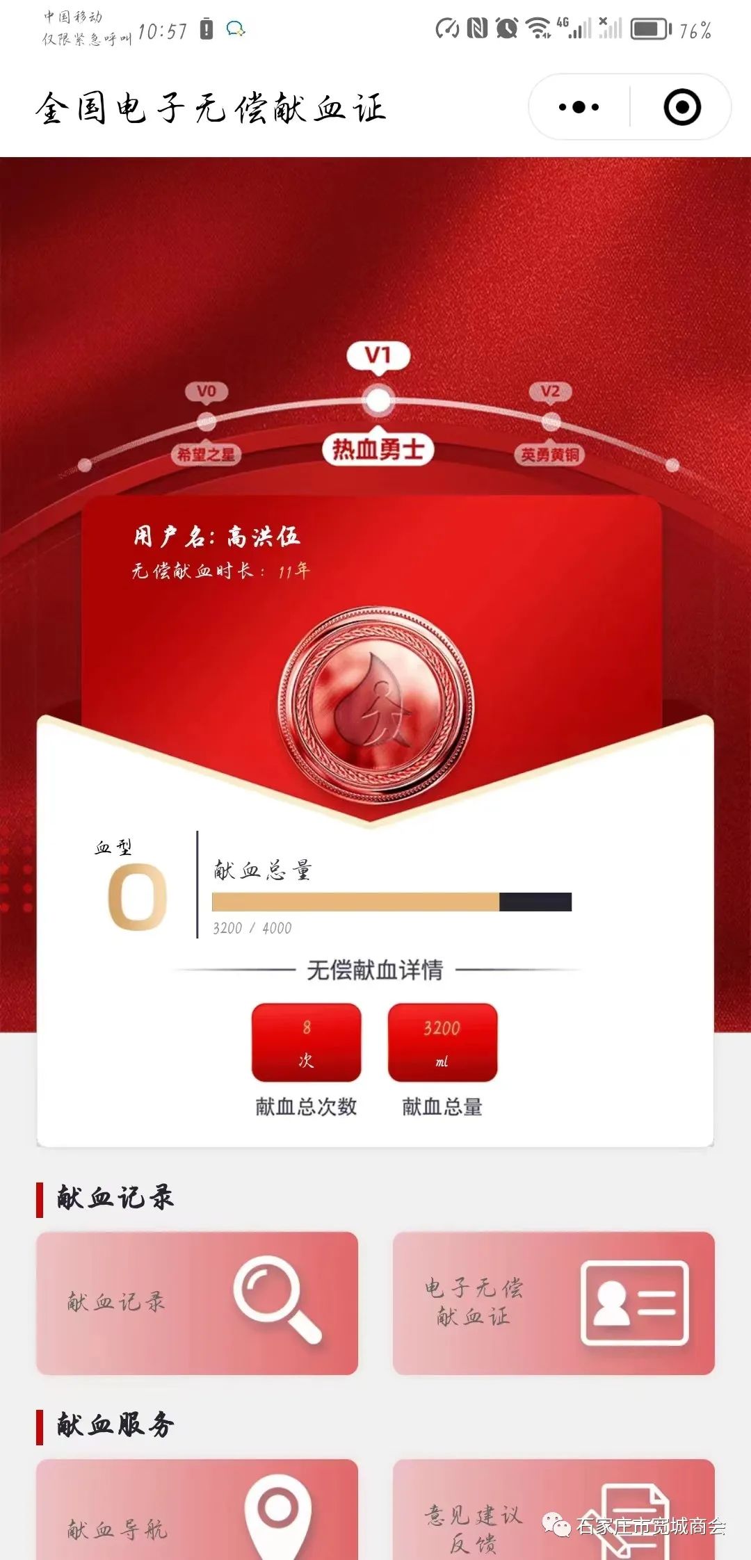 我们商会的献血达人、健身达人高洪伍加上本次献血累计达到9次共计3600毫升,这样大无畏的热血勇士,让我们一起给他点赞