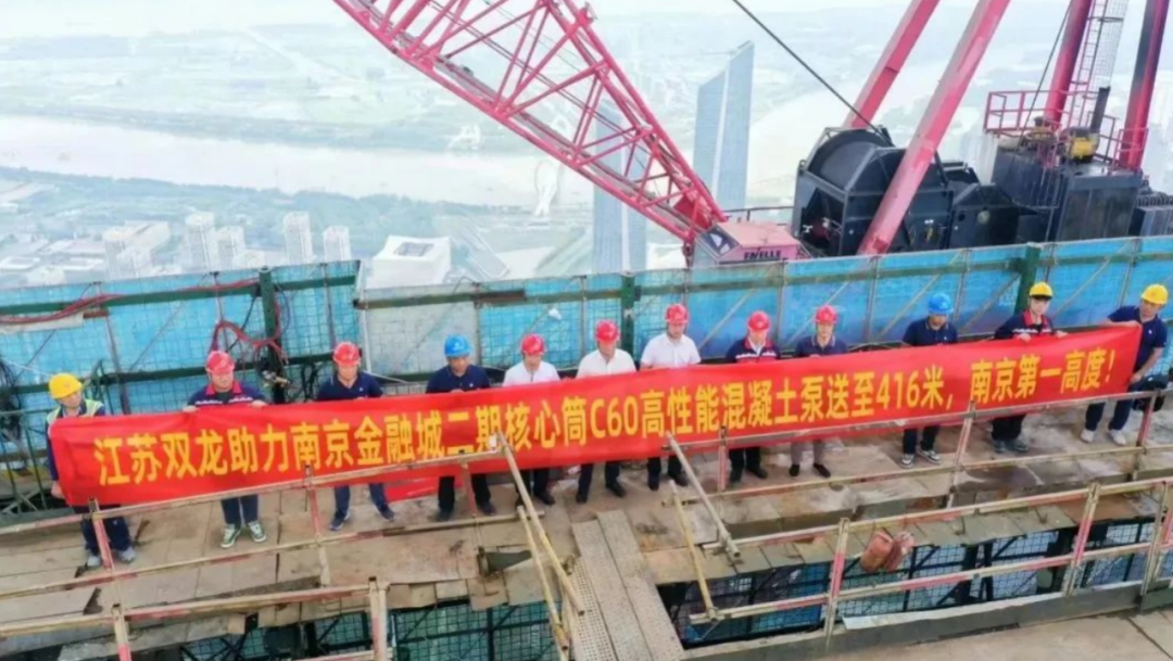 8月27日,江苏省南京市金融城二期东区建筑核心筒的混凝土泵送顺利完成,此次由华东材料有限公司旗下双龙集团、言午运输联合三一重工,率先突破设备和技术限制,系国内首次采用超高压车载泵完成416米的高层泵送。