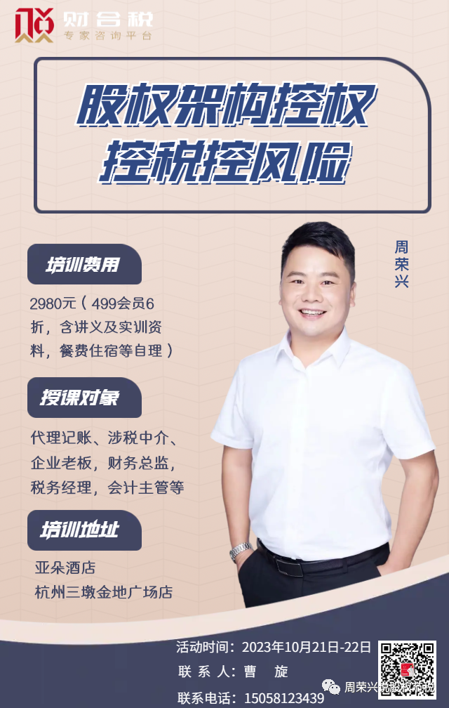 《股权架构控权控税控风险》十月份课程,欢迎扫码报名参加!!!