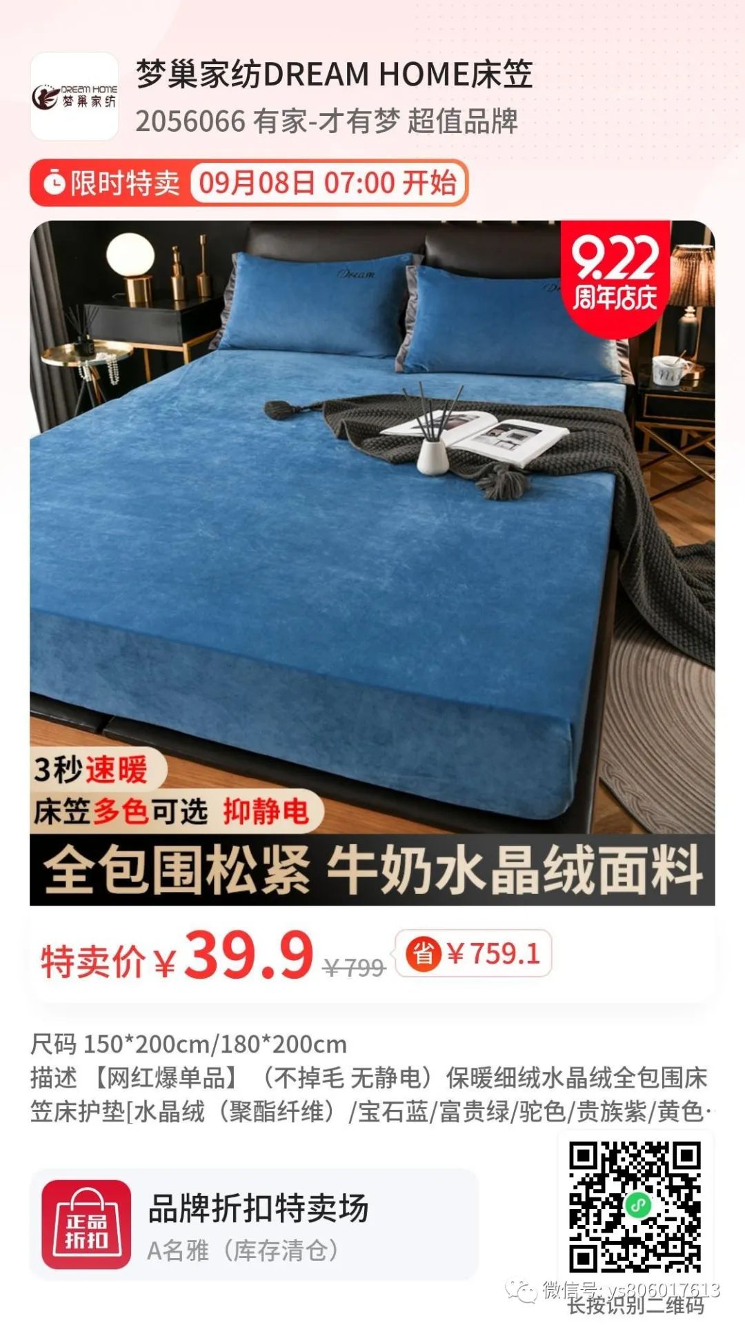 保暖水晶绒床笠特价只要39.9,贴身保暖,多个颜色可选,冬天再也不怕冷啦