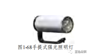 手提式强光照明灯是一种手持的移动照明和应急照明设备,具有照射距离远、穿透力强等特点,如图1-68所示。