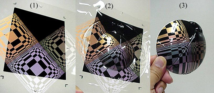在立体物方面实现自由设计的薄膜压延成形(FIM/IMD)。FIM/IMD是用(1)印刷工艺(2)成形加工工艺(3)注入成形工艺,3种工艺进行加饰。这3种工艺的加饰过程中,由于印刷的加饰和涂装等不同,可以进行自由度高的设计。