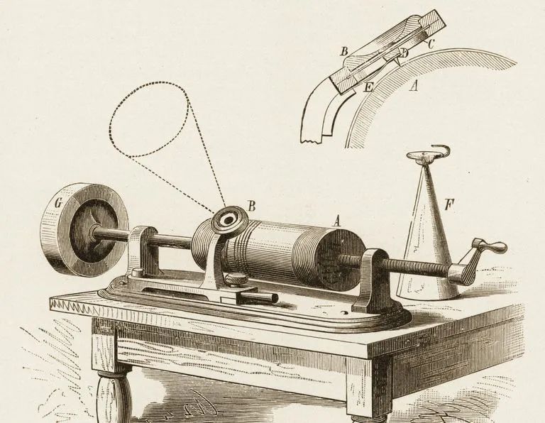 在一次偶然的机会下,他发现了一个旋转的金属圆筒上刻出了一些凹槽。