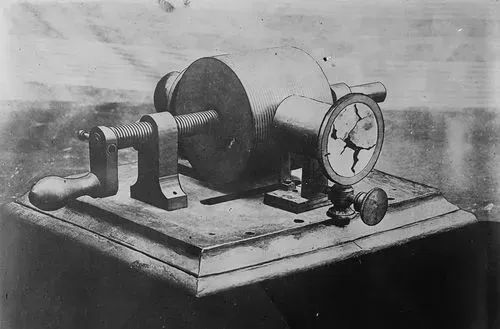 爱迪生立刻想到,如果将这个圆筒放在一个带槽纹的轮子上,再通过一些机械装置来播放音乐,会不会很有趣呢?