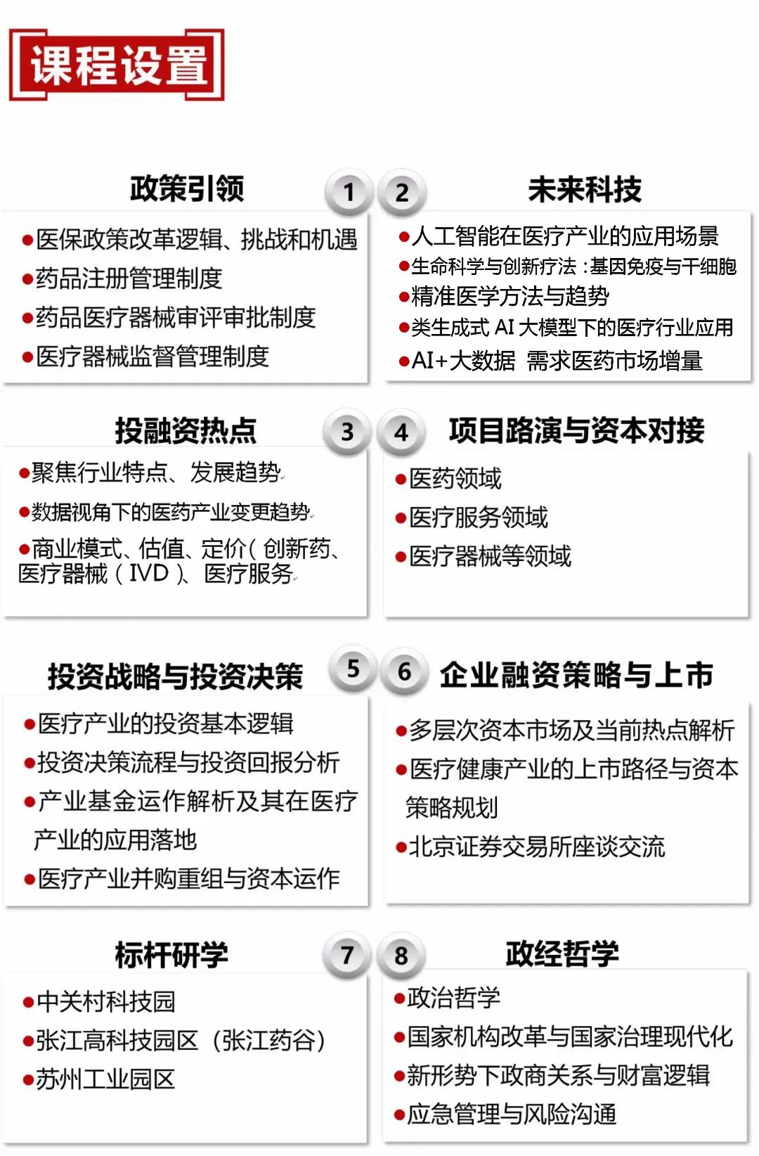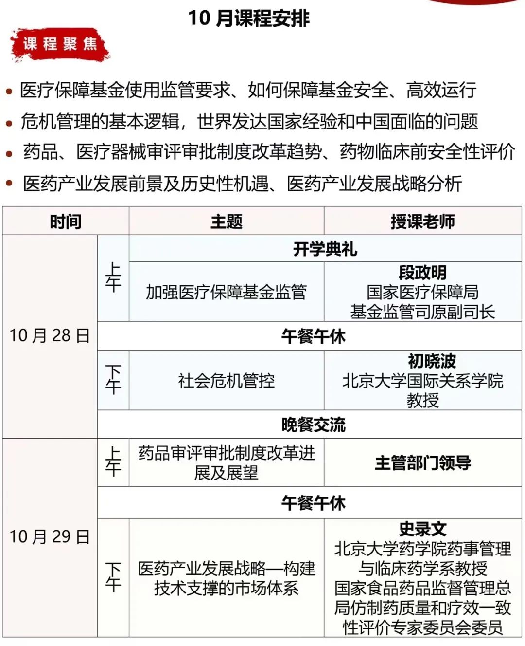北京大学医疗产业投融资领军人才研修班10月28日将迎来开学典礼,届时来自医药、医疗器械、医疗服务、智慧医疗等大健康细分领域企业家同学以及医疗产业投资机构投资人将相聚北大燕园,与专家学者一起,共同搭建科学家、企业家、投资人的高质量学习交流平台。