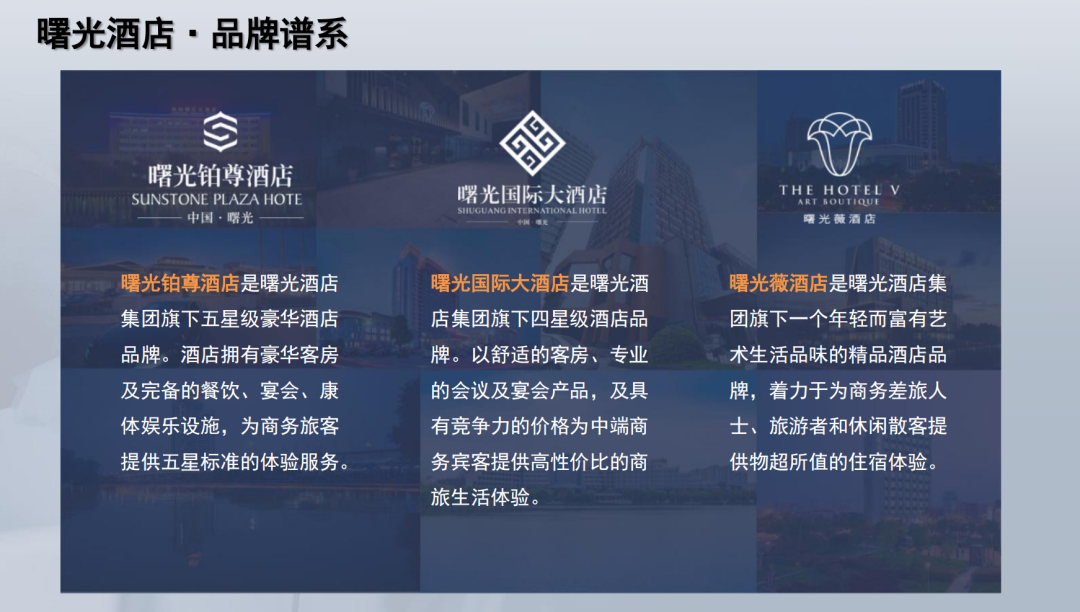 集团旗下的曙光地产集团有限公司,拥有台州曙光、淮安曙光、青岛曙光等曙光系列成员企业十余家,开发足迹遍及台州、上海、淮安、句容、南京、青岛、六安、黑龙江、湖南等地。集团旗下的曙光酒店集团有限公司,是中国旅游饭店协会理事单位、中国饭店集团60强。多年来深耕于长三角地区,已覆盖上海、浙江、江苏、安徽、山东等多省市,拥有“曙光铂尊”“曙光国际”“曙光铂悦”“曙光薇”四大品牌,涵盖奢华五星、豪华四星和艺术精品酒店完整品牌谱系,并先后荣膺“星光奖”“中外酒店白金奖”“MBI影响力酒店管理公司”等多项业界荣誉,目前已运营酒店20余家,初步形成全国连锁格局。