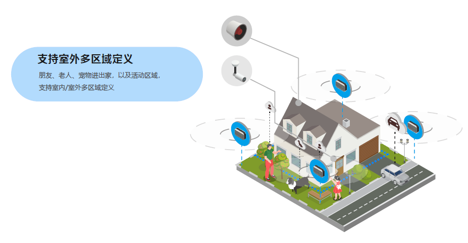 前花园、后花园、游泳池、休闲区、室内、离家等多场景区域监控