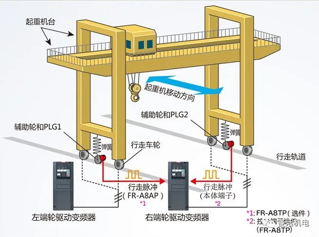 在门座式起重机的平移应用时,可在行程中对两个轴的位置偏移进行校正,从而无需外部上位控制器并可降低系统成本。
