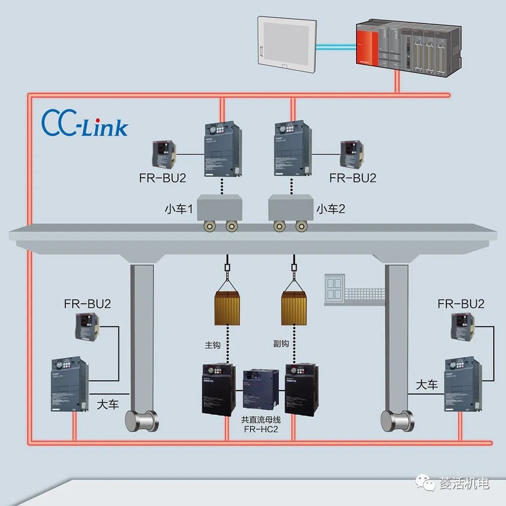 • 三菱电机现场总线---每个CC-Link主站通讯模块可最多链接42台变频器。