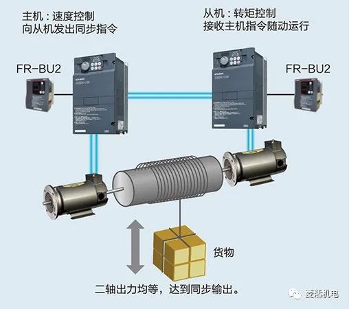 冶金铸造吊常用多台电机驱动刚性轴吊运钢包,为保证各电机出力均等,利用变频器的主-从控制功能实现负载的稳定运行。