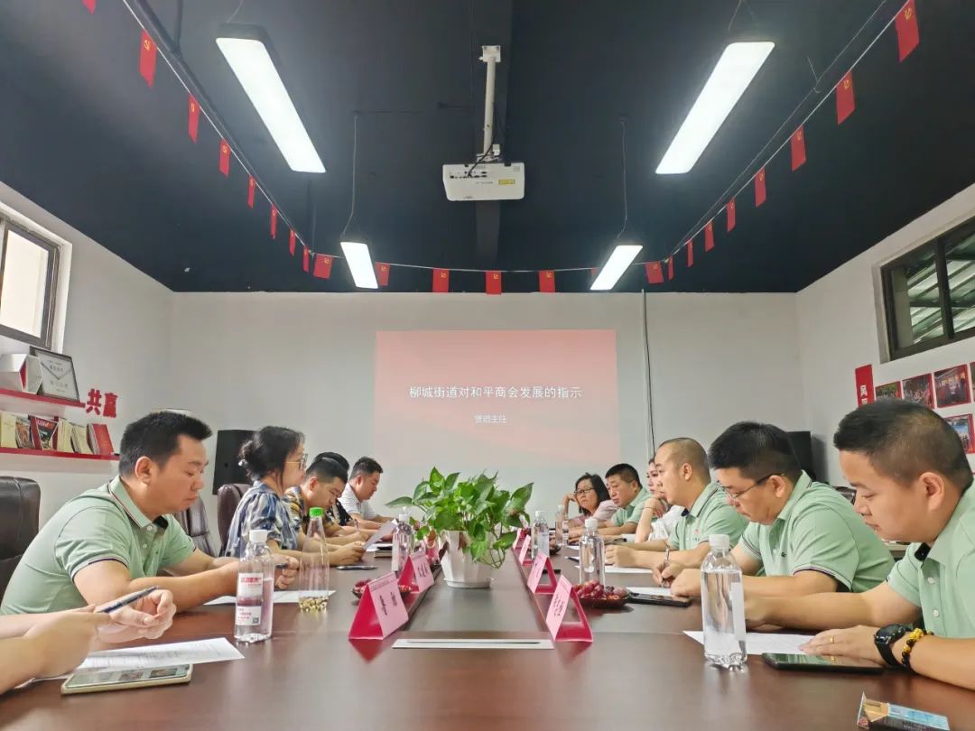 会前,柳城街道副主任赁琨,就和平商会过去的工作给予了高度肯定,并对今后的工作作出了明确的指示:一是要明确商会成立初衷,坚定不移朝着商会的目标发展,二是要厘清造血项目,加快招商引资,带动社区经济及产业发展,三是“商社”联动,社区治理和商会发展要同步进行,进而向街道发展靠拢。