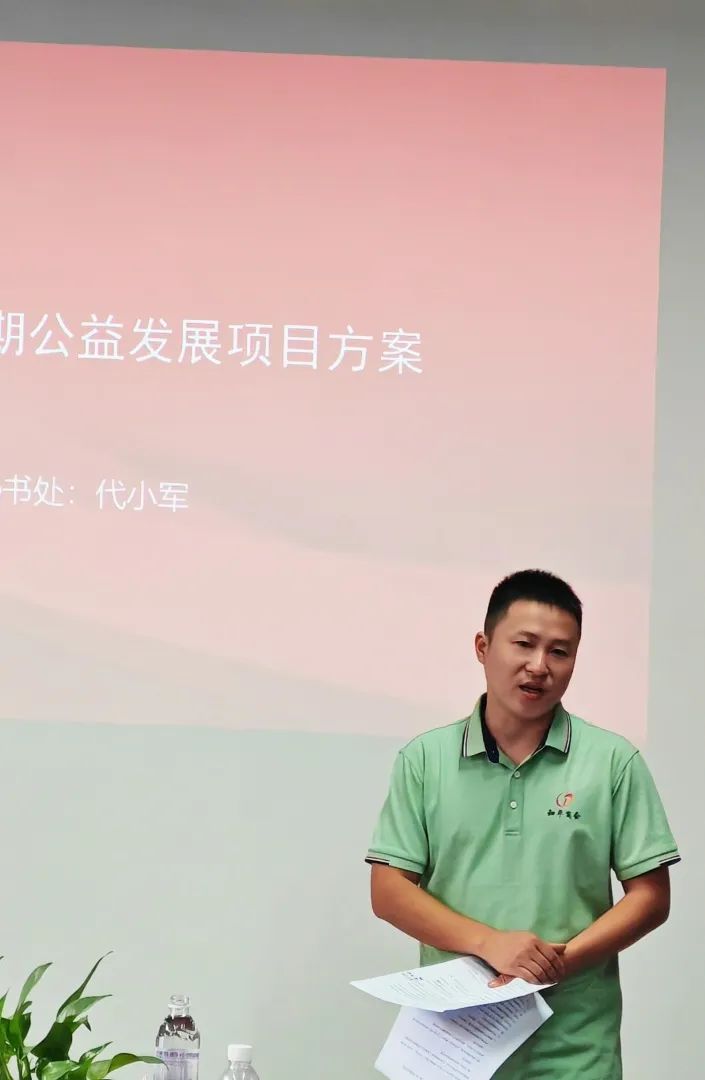 汇报阶段,秘书处代小军就商会长期公益项目方案的草案进行了详细的汇报。