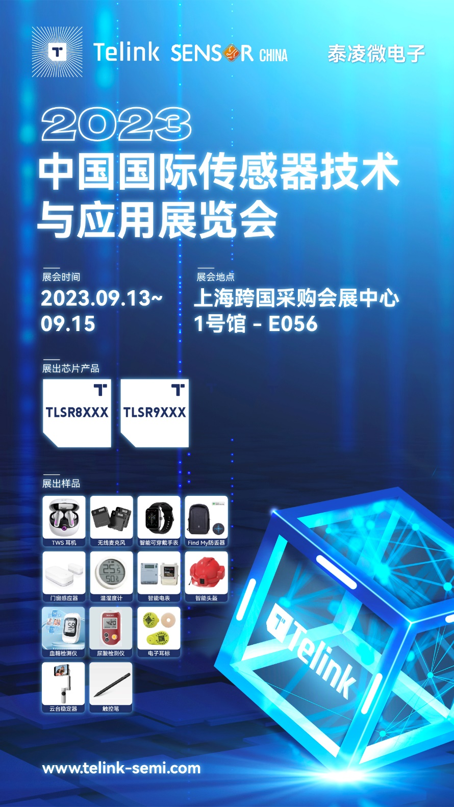 2023年9月13日至15日,泰凌微电子将在上海跨国采购会展中心1号馆 E056展位,展示其最新的芯片产品及应用方案,助力传感器行业的发展。